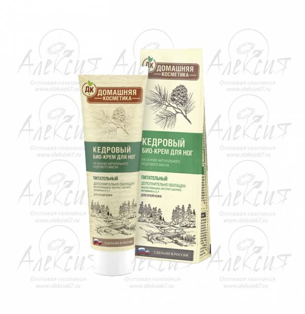 Питательный КЕДРОВЫЙ БИО-КРЕМ ДЛЯ НОГ сделает кожу мягкой и гладкой. Приготовленный по домашнему рецепту, на основе натурального кедрового масла, он глубоко питает, быстро впитывается и глубоко восстанавливает кожу стоп. Масло ромашки, дезодорирует, способствует заживлению микротрещинок. Масло шалфея снимает стресс и оказывает расслабляющее действие. Крем обогащен витаминами А, С и F, благодаря которым ощущение комфорта после ухода останется надолго.