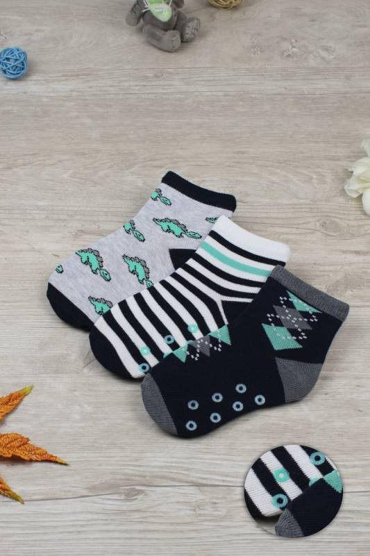 Детские носочки с антискользящим покрытием на стопе. В упаковке 3 пары - по 1 паре каждого вида