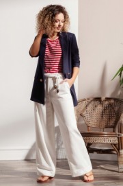 Льняные брюки прямого кроя, на притачном поясе с застежкой на молнию и потайные крючки, с боковыми наклонными карманами и карманами с листо