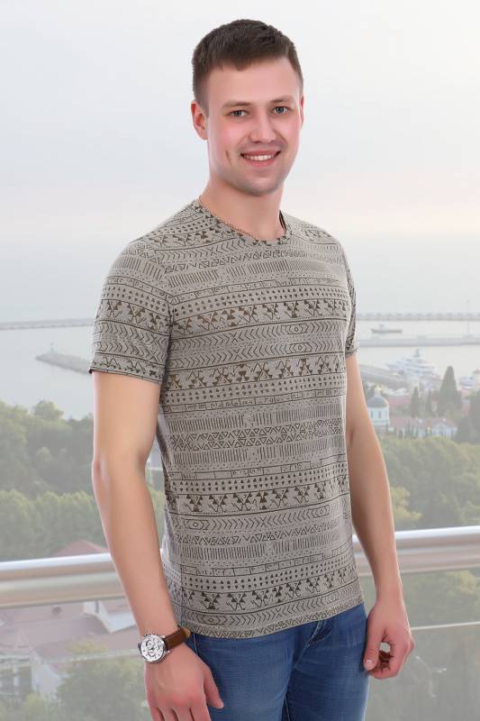 Мужская футболка из деворе. Круглая горловина, короткие рукава, дизайн в виде горизонтальных этнических узоров, несколько вариантов расцветки