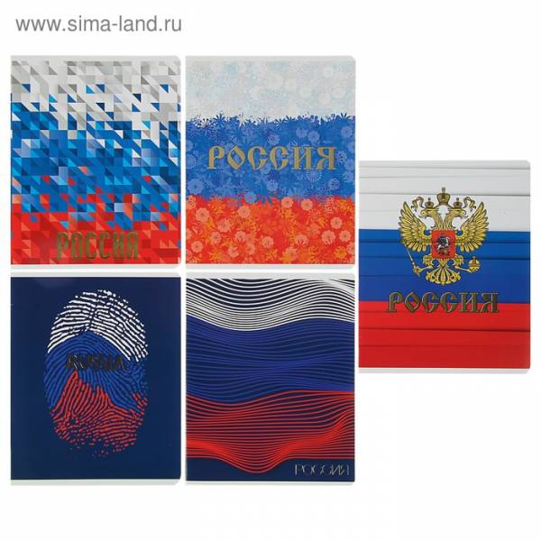 Тетрадь 48 листов в клетку «Россия: герб, триколор», обложка мелованный картон, выборочный УФ-лак, блок офсет, тиснение фольгой, МИКС