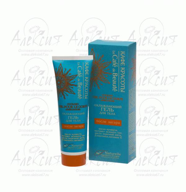 Охлаждающии? гель для тела - натуральное и эффективное средство для восстановления кожи после солнечных ожогов. Нежно и быстро успокаивает чувствительную кожу, увлажняет и охлаждает, обеспечивая приятное чувство комфорта и свежести. Масло кунжута глубоко питает и увлажняет кожу, обладает ранозаживляющим и бактерицидным свои?ствами. Экстракт перечнои? мяты оказывает приятныи? охлаждающии? эффект, успокаивает раздраженную кожу. Экстракт зеленого чая обладает выраженным антиоксидантным, противовоспалительным и успокаивающим свои?ствами, замедляет процесс старения кожи, повышает тонус. Витамин Е замедляет процессы старения кожи, борется с сухостью, поддерживая водно-липидныи? баланс. Д-пантенол способствует быстрому заживлению обгоревших участков кожи и восстановлению поврежденных клеток.