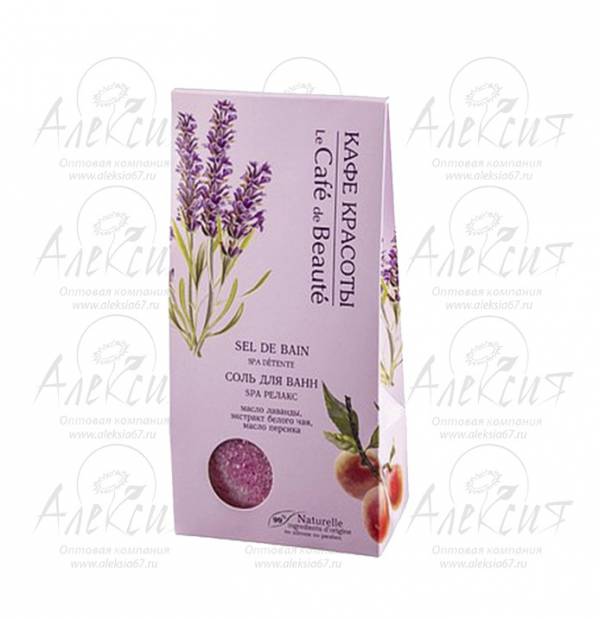 Морская соль для ванн SPA Релакс с маслом лаванды, экстрактом белого чая и маслом персика поможет расслабиться и насладиться SPA процедурами не выходя из дома! Активные компоненты делают кожу здоровой и красивой, способствуют повышению ее упругости и эластичности, а нежный аромат лаванды оказывает глубокое успокаивающее и расслабляющее действие.   Масло Лаванды успокаивает, устраняет напряжение, нормализует сон, обладает антисептическим эффектом. Экстракт Белого Чая и масло Персика повышают тонус, питают и увлажняют кожу, делая ее мягкой и шелковистой.   Способ применения: Растворить 4 столовые ложки во всем объеме ванны при температуре 35-38С, рекомендуемая продолжительность приема ванны 10-15 минут.