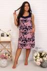 Сорочка женская прямого силуэта. Рукав короткий цельнокроенный. В верхней части полочки планка с тремя пуговицами. Рюши на фоне вставок из розовой ткани придают сорочке особую женственность. Сборка на полочке по линии груди создает дополнительную свободу в области талии и бедер.