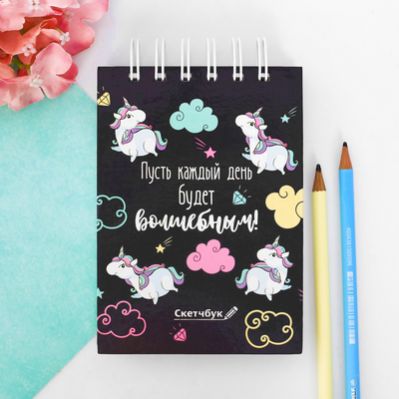 Скетчбук на гребне "Пусть каждый день будет волшебным!", твёрдая обложка, А6, 80 листов