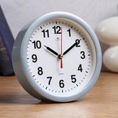 Будильник кварцевый d=15см, корпус серый "Классика", плавный ход