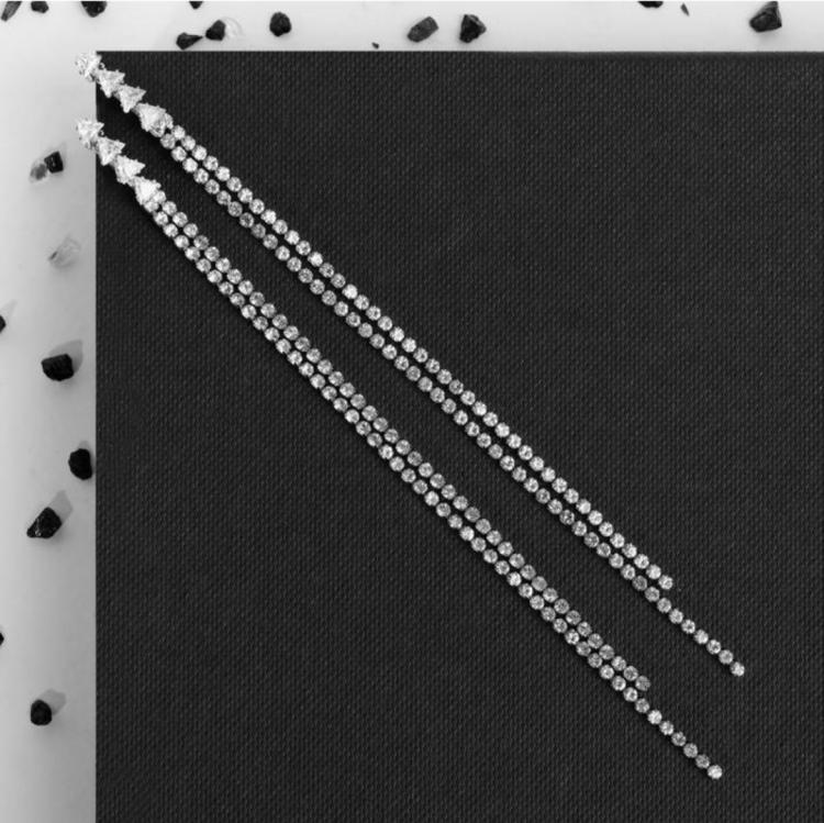 Серьги висячие со стразами "Капель" две нити, цвет белый в серебре