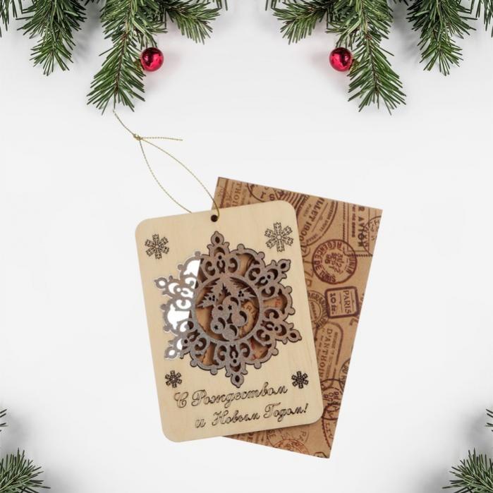 Открытка деревянная "С Рожеством и Новым Годом! - 2" снежинка 8,2 х 11,5