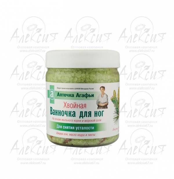 Хвойная ванночка, в состав которой входят натуральные компоненты, рекомендуется для снятия усталости при длительных нагрузках на ноги. Эфирное масло пихты снимает отеки, ощущение тяжести в ногах. Эфирное масло кедра повышает защитные функции кожи. Живица из шишек ели устраняет дерматозы стоп. Продукт прошел испытания в ЦНИКВИ Минздрава России.