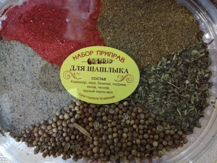 Подарочный набор специй включает в себя следующие приправы и специи: -приправа для шашлыка