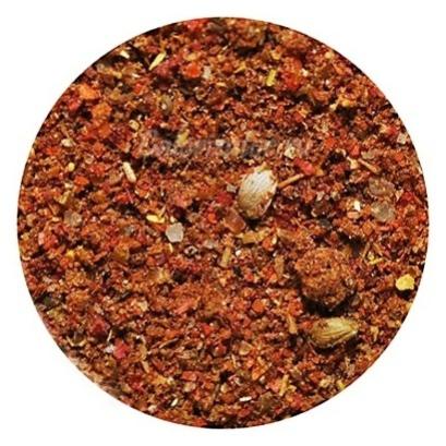 Состав: мускатный орех молотый, имбирь молотый, кориандр, душистый перец, черный перец, тимьян, лимонная кислота, паприка, чили.