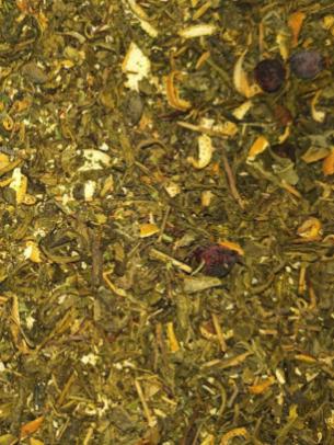 СОСТАВ: Чай зеленый байховый Ганпаудер, лепестки сафлора, цукаты манго, сегмент апельсина, цедра апельсина, цветки апельсинового дерева. Содержит пищевые ароматические масла