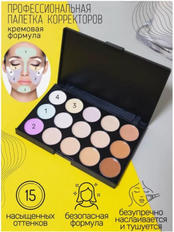 Палетка консилеров и корректоров 15 цветов: консилеры (телесные оттенки) и корректоры (цветные оттенки)