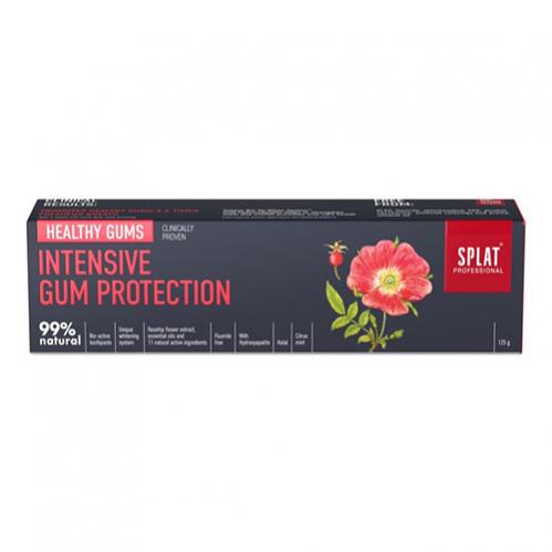 Антибактериальная* зубная паста без фтора линейки PROF-BIOME для защиты дёсен входит в новую линейку зубных паст Splat Professional c инновационной системой BIO Sp White System. Экспортная зубная паста Splat. Уникальные свойства линейки: защита от налета на 24 часа**. здоровая микрофлора и благоприятное воздействие на местный иммунитет полости рта***. до 99% Natural origin и эфирные масла в составе. Система BIO Sp White System состоит из фермента бромелаин, гидроксиапатита кальция-магния-цинка, ПВП, округлых частичек диоксида кремния и лизата бифидобактерий для нормализации микрофлоры полости рта, расщепления кариесогенной биопленки и противодействию кровоточивости и воспаления дёсен. Зубные пасты новой линейки Splat Professional имеют ниже абразивность**** и не повреждают эмаль при высокой эффективности очищения. Зубная паста обеспечивает интенсивную защиту десен. Содержит эфирные масла и активные экстракты цветков шиповника, гибискуса, подорожника и мандарина, которые помогают ухаживать за мягкими тканями