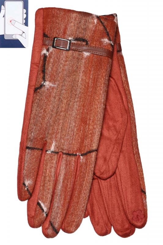 Перчатки женские из иск.замши на велюровой основе. Сенорные (нашивка на кончике указательного пальца). Размер универсальный: 7-7,5. Производство: Китай.