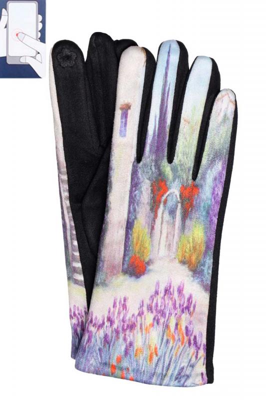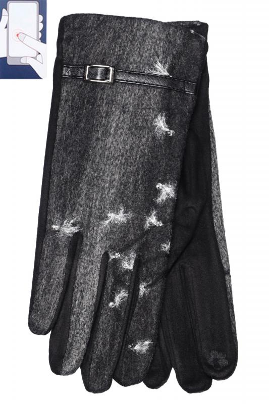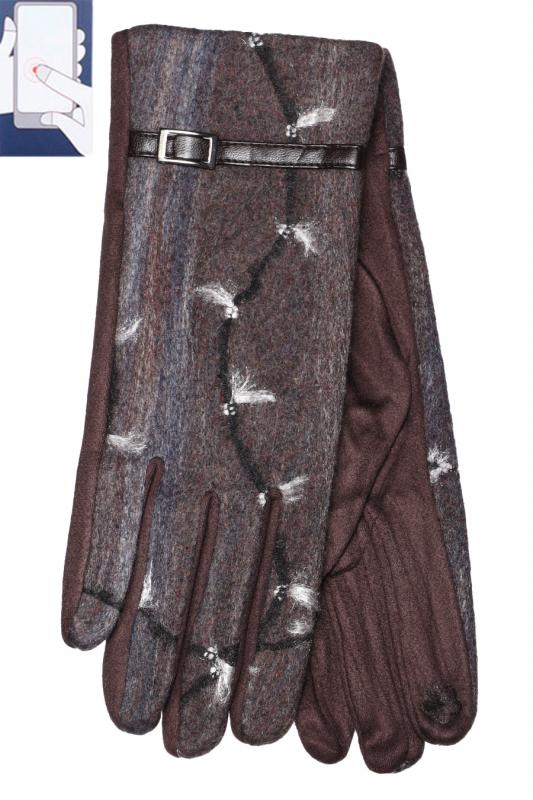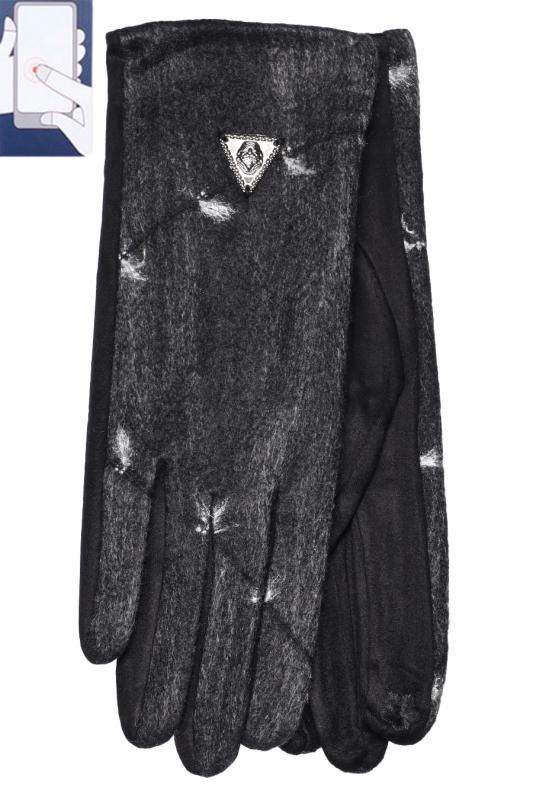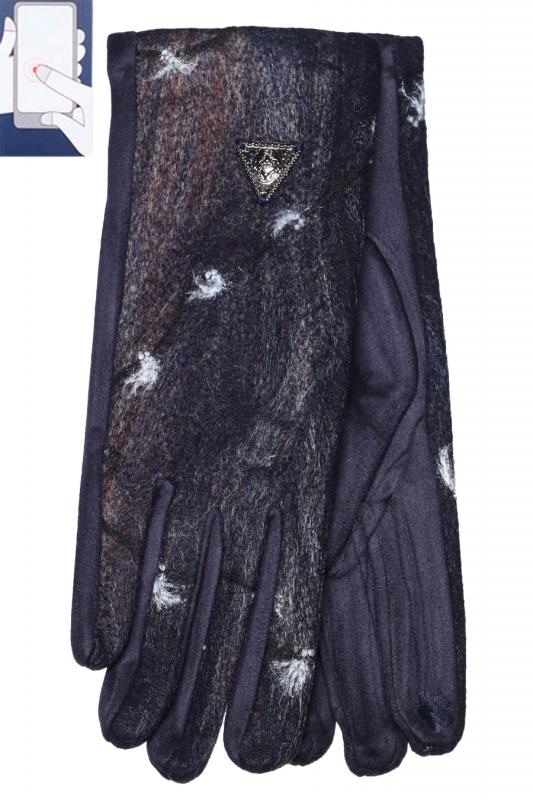 Перчатки женские сенсорные (нашивка на кончике указательного пальца). Комбинированные: верх - трикотажное сукно, ладонь - иск.замша на велюровой основе. Размер: 7,5. Производство Китай.