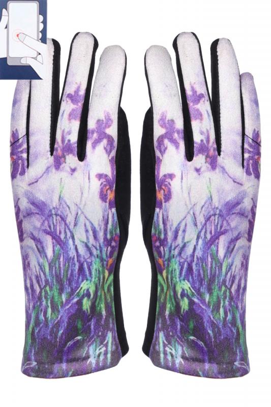 Перчатки женские трикотажные на велюровой основе. Сенорные (нашивка на кончике указательного пальца). Размер универсальный: 7-7,5. Производство: Китай.